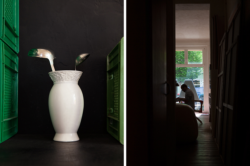 Vielleicht aber sieht man Frank an seinem Schreibtisch sitzen, denn dieses ehemalige Ladenlokal ist sein Zuhause. Frank unterscheidet nicht zwischen Leben, Arbeiten und Ausstellungsraum.