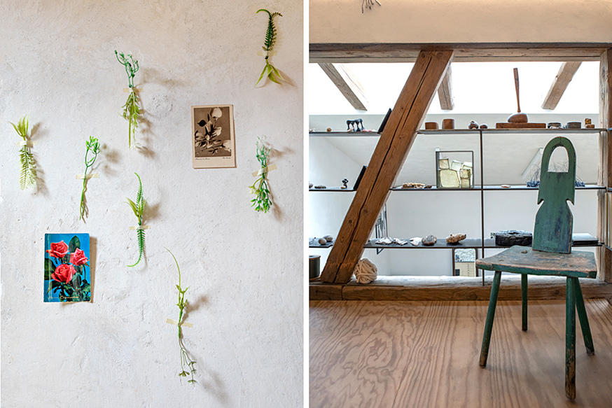 Pods, nuts, fruit, flowers, branches, thorns and many other found objects that serve as her inspiration can be found everywhere. Her spoon creatures and her jewellery often have this connection, but rituals and the influence of religion can also be felt.